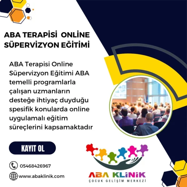 ABA Terapisi Online Süpervizyon Eğitimi ABA temelli programlarla çalışan uzmanların desteğe ihtiyaç duyduğu spesifik konularda online uygulamalı  eğitim süreçlerini kapsamaktadır.